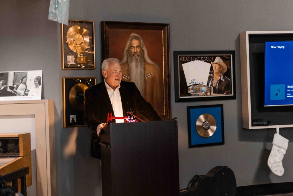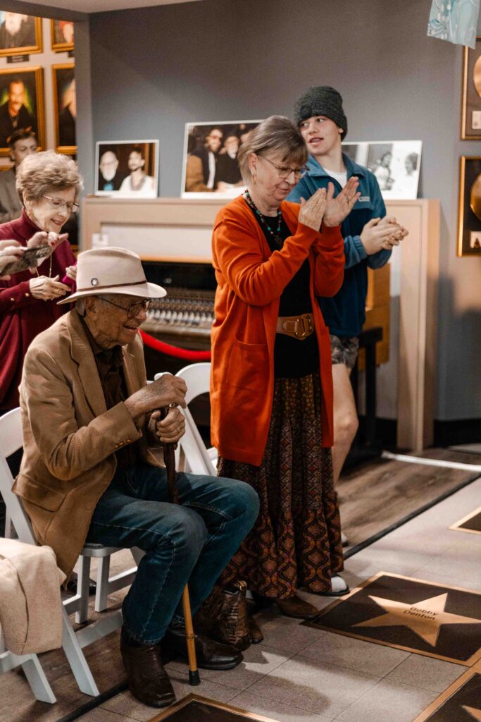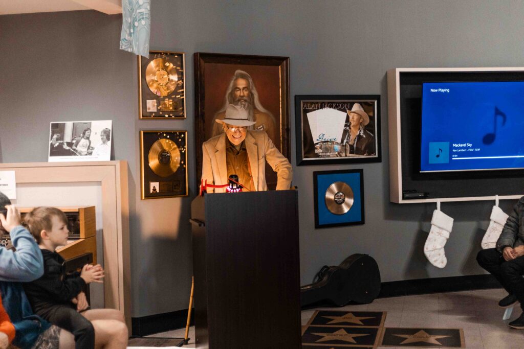 Special thanks to Russ and Kelly McDonald, Mitch Lattof, Jr., Mitchell Lattof III, Rick Burch, Boyd DeCoito, Greg Hughes, Tofey Leon, Karl “Scooter” Rambo, Greg Underwood, Dr. Lynn Yonge, and Charley Young for making this ceremony possible. Also to Buddy and Billie Cannon and Harold Shedd, some of his favorite friends and first supporters in Nashville. Thank you for making the trip and seeing this full circle moment! And to all who travelled so far to see this happen – thank you. My dad completely lit up seeing you all. I can never express what that truly means.