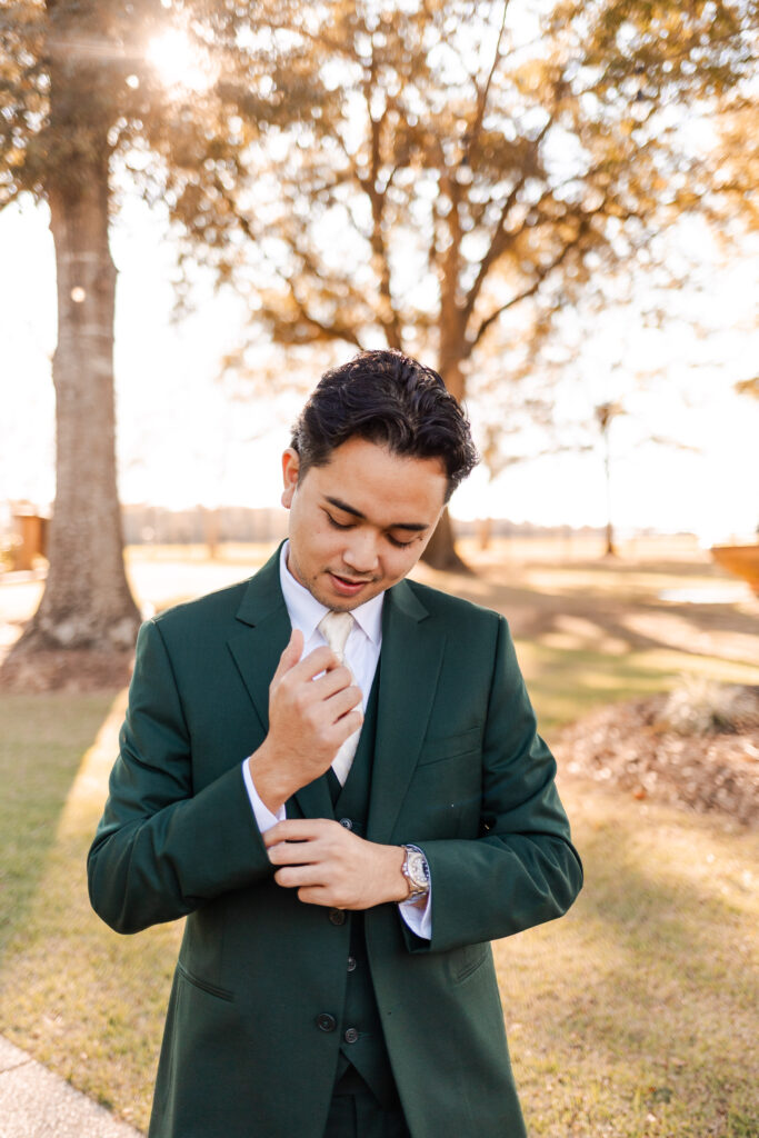 Thoughtful accessories, like a nice watch or a dressy hat, can also help a groom feel his best on the big day. When in doubt, you can never go wrong with a timeless, expertly tailored suit.