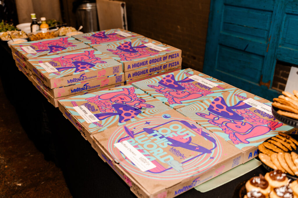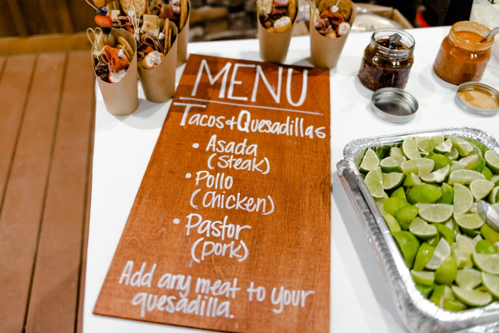 Authentic offerings, like the fresh taco bar offered at Lucy and Will’s wedding, are also especially hot. Expect to see plenty of casual, crowd-pleasing bites (everyone likes pizza!), and morning nuptials with brunch and breakfast options, too.