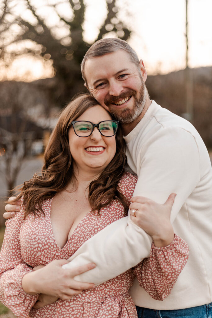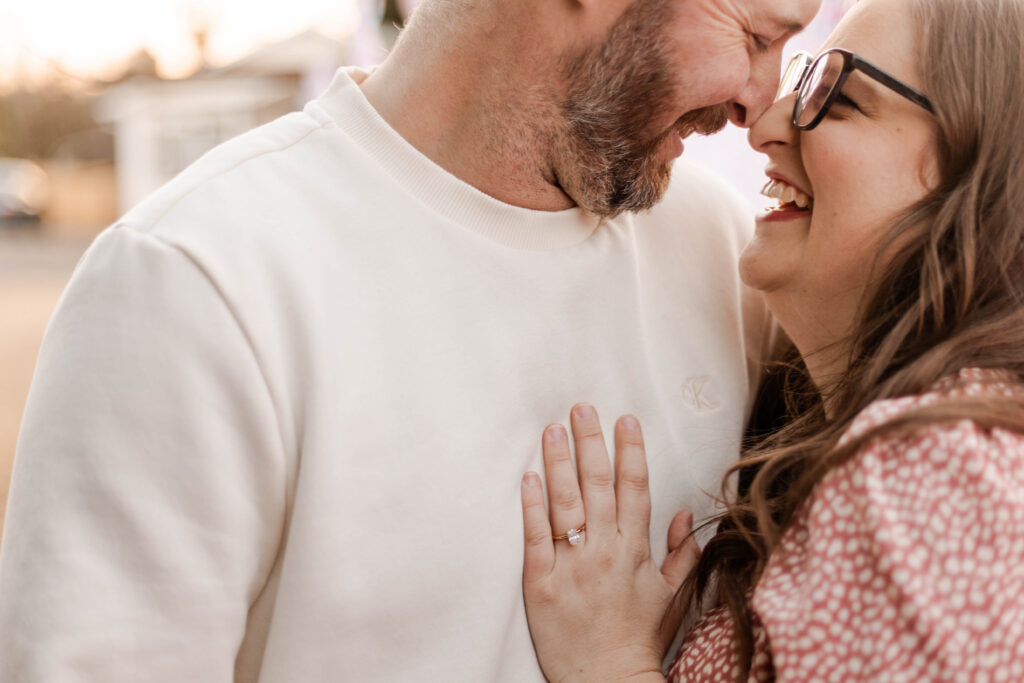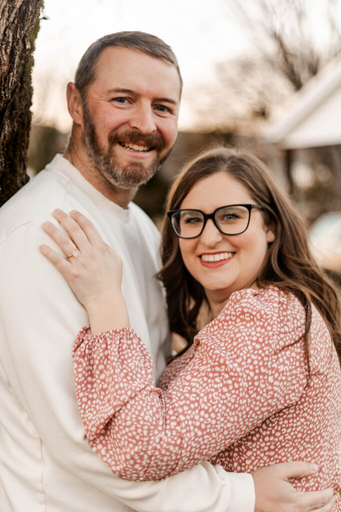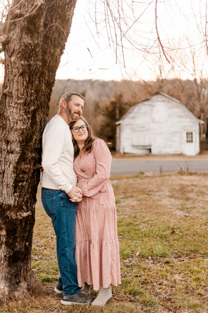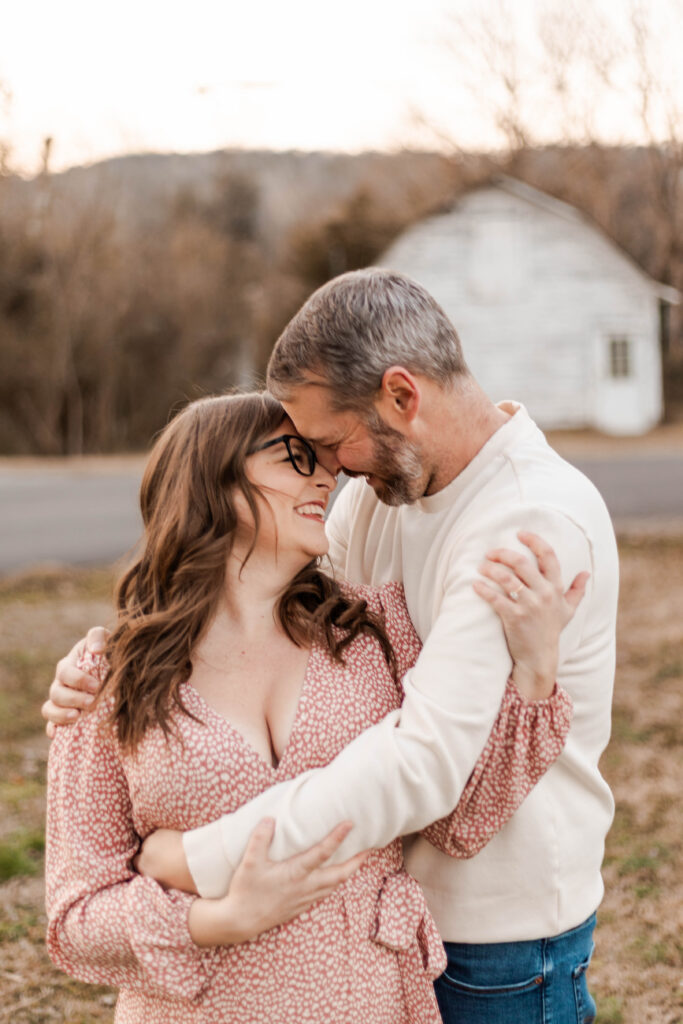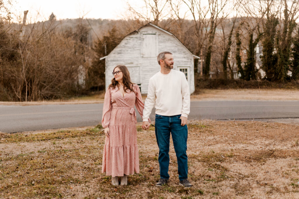 Ally and Derrick brought the absolute BEST vibes to their Fort Payne Farmhouse Engagement Session! I was so honored to welcome these two lovebirds to my new home in Fort Payne, and they were simply picture-perfect. Love was definitely in the air since their Engagement Session took place just before Valentine’s Day. Ally’s adorable pink dress was on-point for the romantic theme, and I like that Derrick stuck to a neutral look to let Ally (and her rock 💍) really shine.